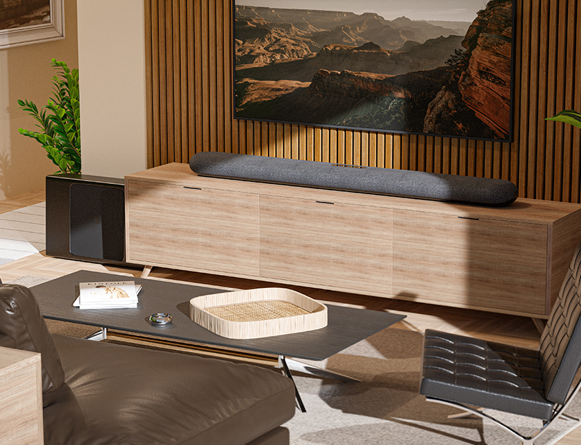 A PULSE CINEMA MINI traz o mesmo design cuidadoso e engenharia acústica avançada para espaços menores e televisores secundários, tornando-a o sistema de som perfeito para quartos, salas de estar ou pequenos apartamentos.