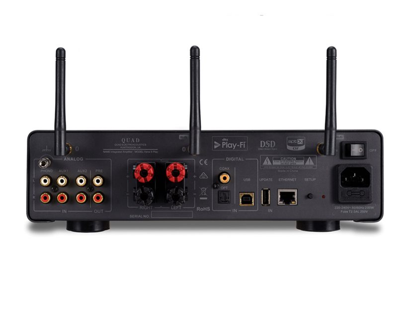 O Quad Vena II Play é um streamer de áudio sem fios que tem a particularidade de suportar a tecnologia DTS Play-Fi. Esta tecnologia permite tirar partido da sua rede sem fios Wi-Fi, possibilitando assim uma partilha da música a partir de diversos dispositivos, podendo os mesmos estar em divisões distintas da casa.