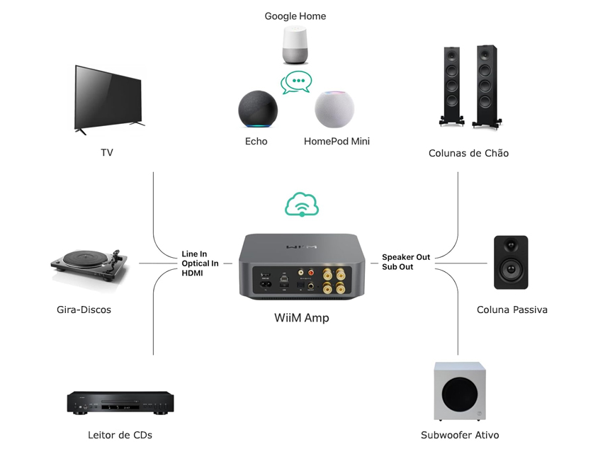 O versátil Amplificador com Streaming WiiM AMP inclui: